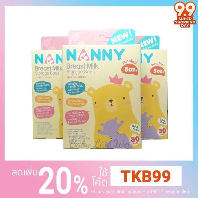 จำหน่าย Nanny ถุงเก็บน้ำนมแม่ 5oz แนนนี่ 3 กล่อง (บรรจุ 30 ใบ/กล่อง - ขนาด 5 ออนซ์) - Breast Milk Storage Ba ราคาพิเศษ ส่งฟรีถึงมือท่านแน่นอน ไม่ต้องโอนเงินก่อน รอรับของที่บ้าน แล้วค่อยจ่ายเงิน เพราะเรามีบริการเก็บเงินปลายทาง