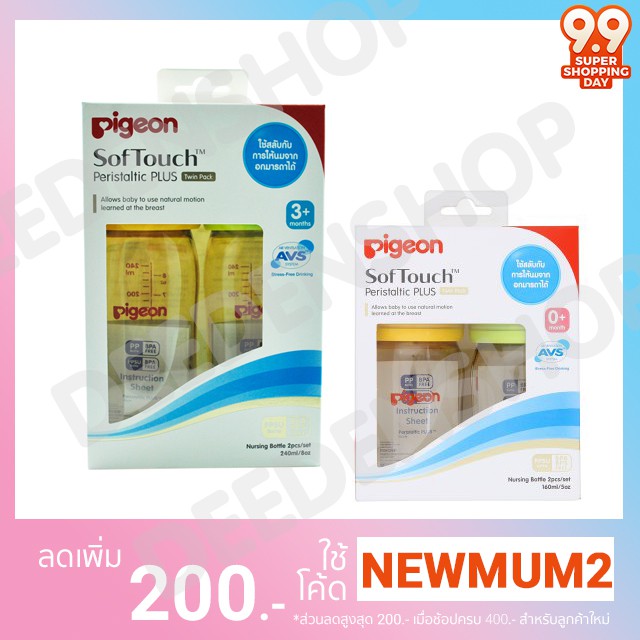 - ชื่อสินค้า ขวดนม แพคคู่ / เดี่ยว พีเจ้น pigeon SofTouch จุกนมเสมือนอกมารดา มีทั้ง ss และ m ลด 100 โค้ด NEWUWW
