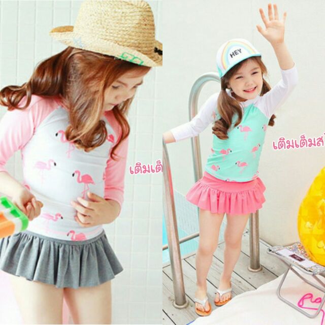 - - รีวิว ชุดว่ายน้ำเด็ก ชุดว่ายน้ำเด็กผู้หญิง ลายฟามิงโก้