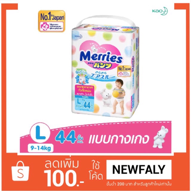 ถ้าคุณอยากได้ Merries กางเกงผ้าอ้อม ไซส์ L (9-14kg)44 ชิ้น เมอร์รี่ส์ แพ้นท์ 1ห่อ 44 ชิ้น ในราคาพิเศษ แถมส่งฟรีถึงหน้าบ้าน จ่ายเงินเมื่อรับสินค้า คลิกเลยครับ