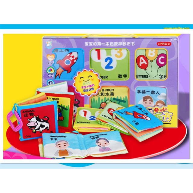 หนังสือนิทานผ้า เสริมพัฒนาการณ์ ครบเซ็ต เซ้ตละ 6 เล่ม..ของเล่นเสริมพัฒนาการ สินค้ายอดนิยม สินค้าขายดี เซ็ตหนังสือผ้าเสริมพัฒนาการ 6 เล่ม 1.สี และผลไม้ 2.ยานพาหนะ 3.ตัวเลข 4.บุคคลในครอบครัว 5.สัตว์ 6.ตัวอักษร ABC 1 เล่มมี 4 แผ่น 8 หน้า มีเสียงก๊อบแก๊ป หนังสือทำจากผ้าคุณภาพดีไม่เป็นขุย มีสีสันสดใสชวนมอง ทำให้น้องๆเกิดความสนใจและเพลิดเพลิน กระตุ้นพัฒนาการการหยิบจับ สายตา และเสริมสร้างจินตนาการได้เป็นอย่างดี สามารถซักทำความสะอาดได้ เหมาะสำหรับเด็กวัยแรกเกิดเป็นต้นไป ขนาดหนังสือแต่ละเล่ม 10.5 x 10.5 x 2.2 cm.